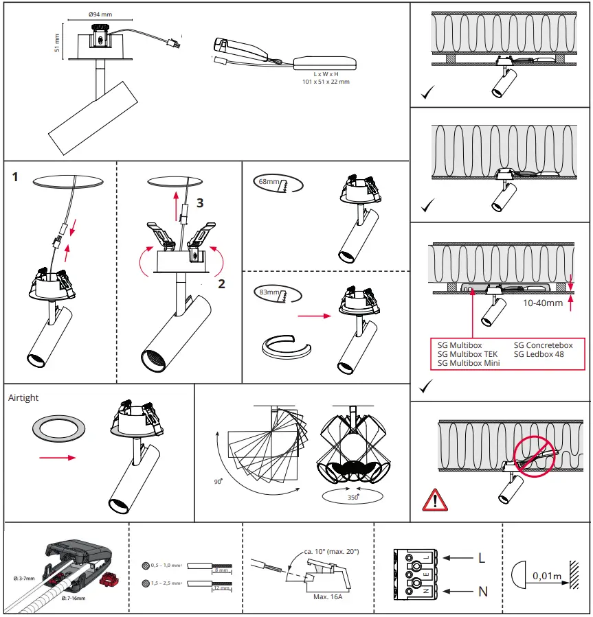 ![]() | Only to be installed and maintained by an authorized electrician. Turn off power before installing |