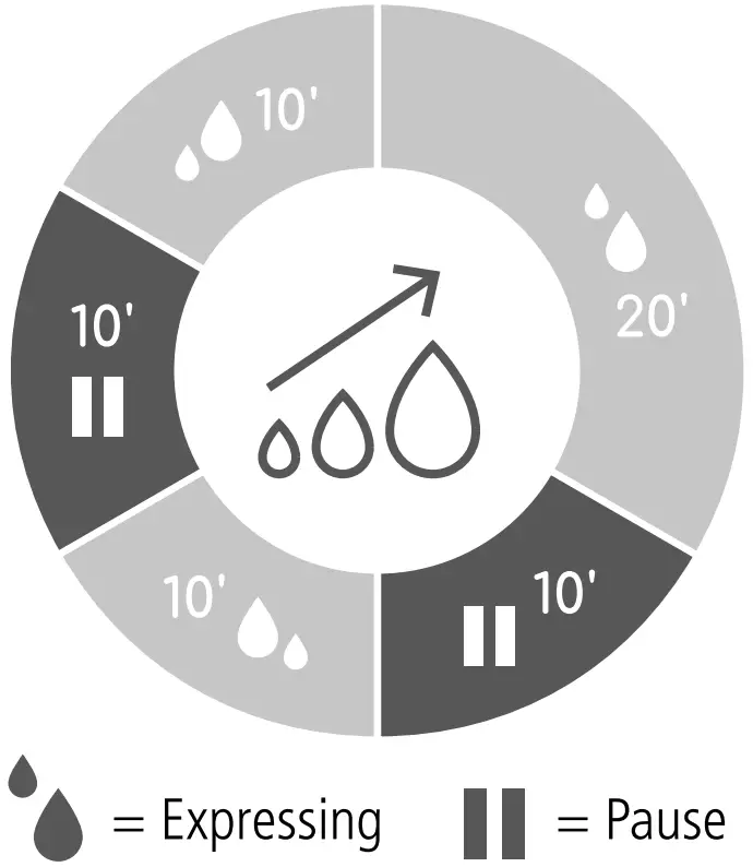 | Expression mode | Slower cycle (suction frequency) and high comfortable vacuum (suction level) for efficient expressing of breast milk once the let-down reflex has been triggered. |