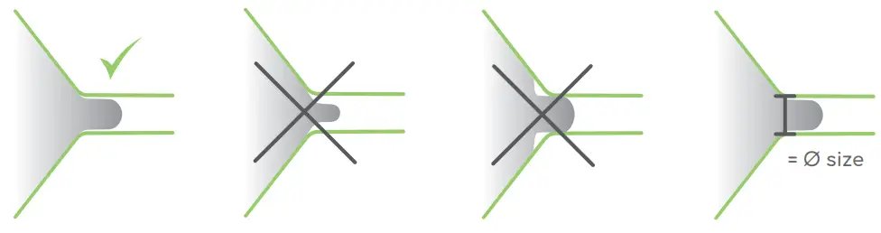 – your nipples move freely in the funnel and follow the rhythmic movements of the breastpump (about 3 mm space between funnel and nipple).