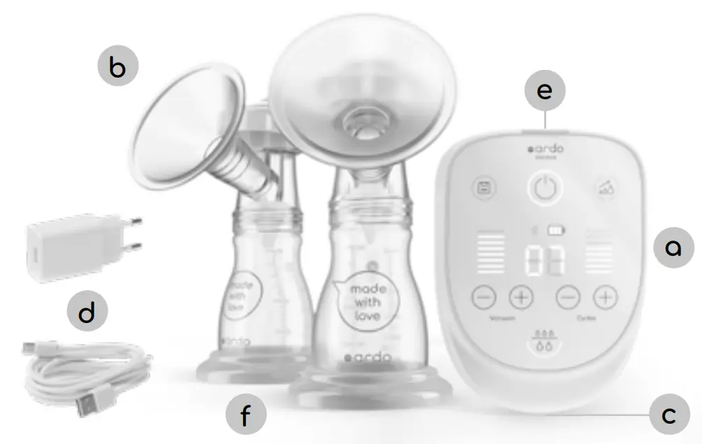 - Only use this breastpump with the supplied Ardo original USB cable and power adapter.