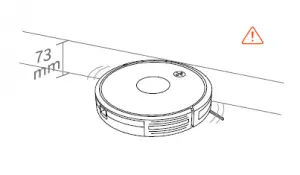 - Keep the robot away from any furniture that may have the space ≤ 2.87in/ 73mm on the bottom as the thickness of the robot is 72mm. It may get stuck if the robot goes in by