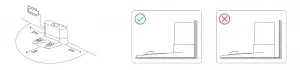 - Place the charging base on a flat surface against the wall with enough room around. Always keep the charging base plugged in, otherwise the robot will not automatically return for charging.