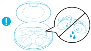 - Fully dry off the earbuds and the USB port before charging.