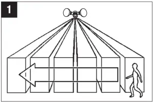 - Locate motion sensor so motion moves across detection zone (Fig. 1).