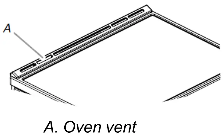 The oven vent releases hot air and moisture from the oven, and should not be blocked or covered. Blocking or covering the oven vent will cause poor air circulation, affecting cooking and cleaning results. Do not set plastics, paper or other items that could melt or burn near the oven vent.