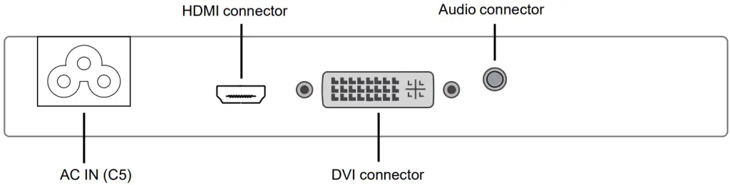 c) Connect the power cable to the Monitor power socket and to the power source in the room.