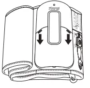 4. Press the hook material firmly against the pile material. The top and bottom edges of the cuff should be tightened evenly around your upper arm.