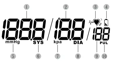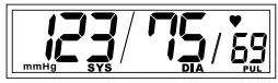After the measurement, the monitor displays the systolic pressure, diastolic pressure, and pulse rate.![]()