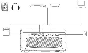 - Installing the remote control battery,please use the remote control in the direction of the projector and playback screen.