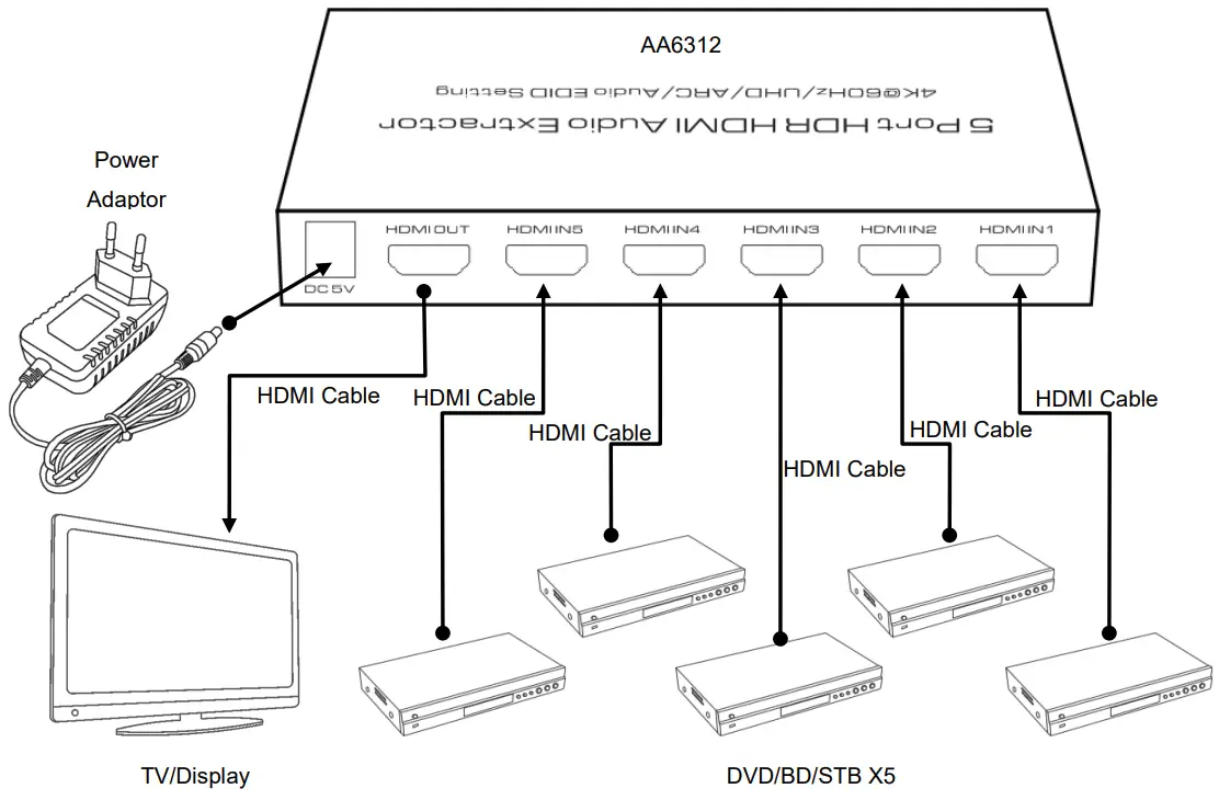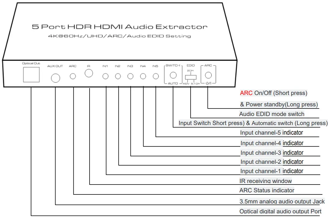 | Model name | 5 Port HDR HDMI Audio Extractor |