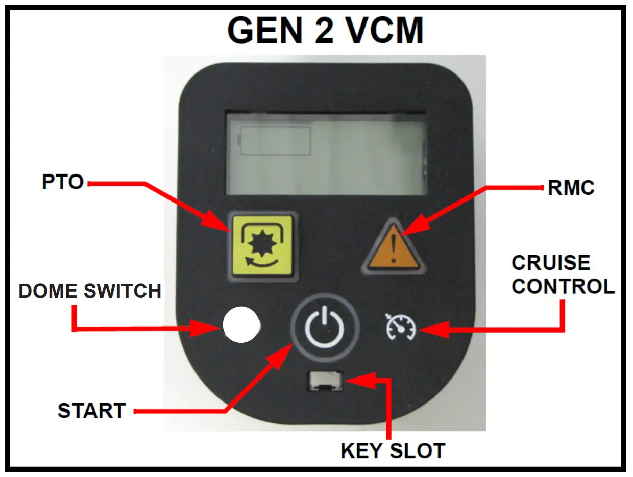 NOTE: If the PTO button is held longer than 7 seconds and E107 error code will appear. Restart the calibration process from Step 1. - Start the rider, test and confirm all operating features work properly and as designed. Return the rider back into service.