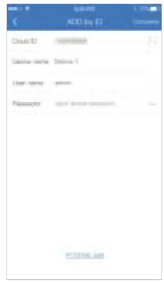 - Enter the device ID and password, and click Finish in the upper right corner to add successfully.