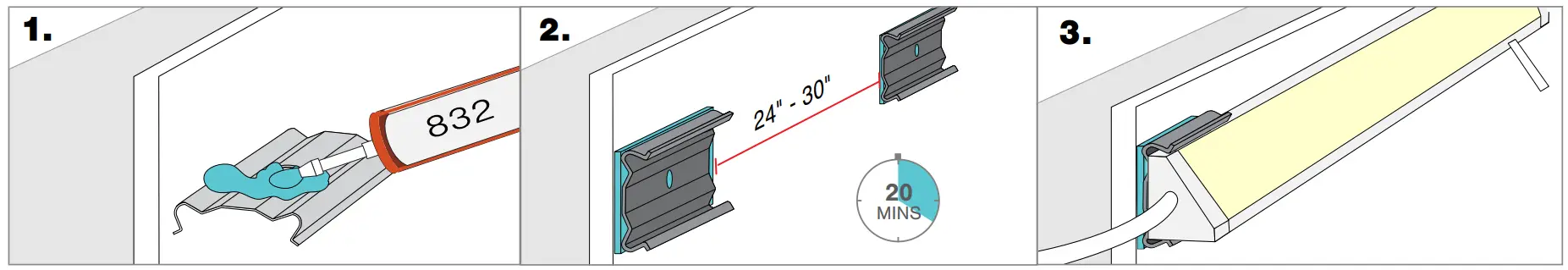 NOTE: Apply silicone in a well ventilated area. 832 Silicone is sold with caulking gun. Do not use in any submersible applications.