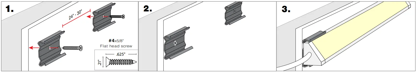 NOTE: 2 clips provided for 4′ or less; 4 clips provided for greater than 4′