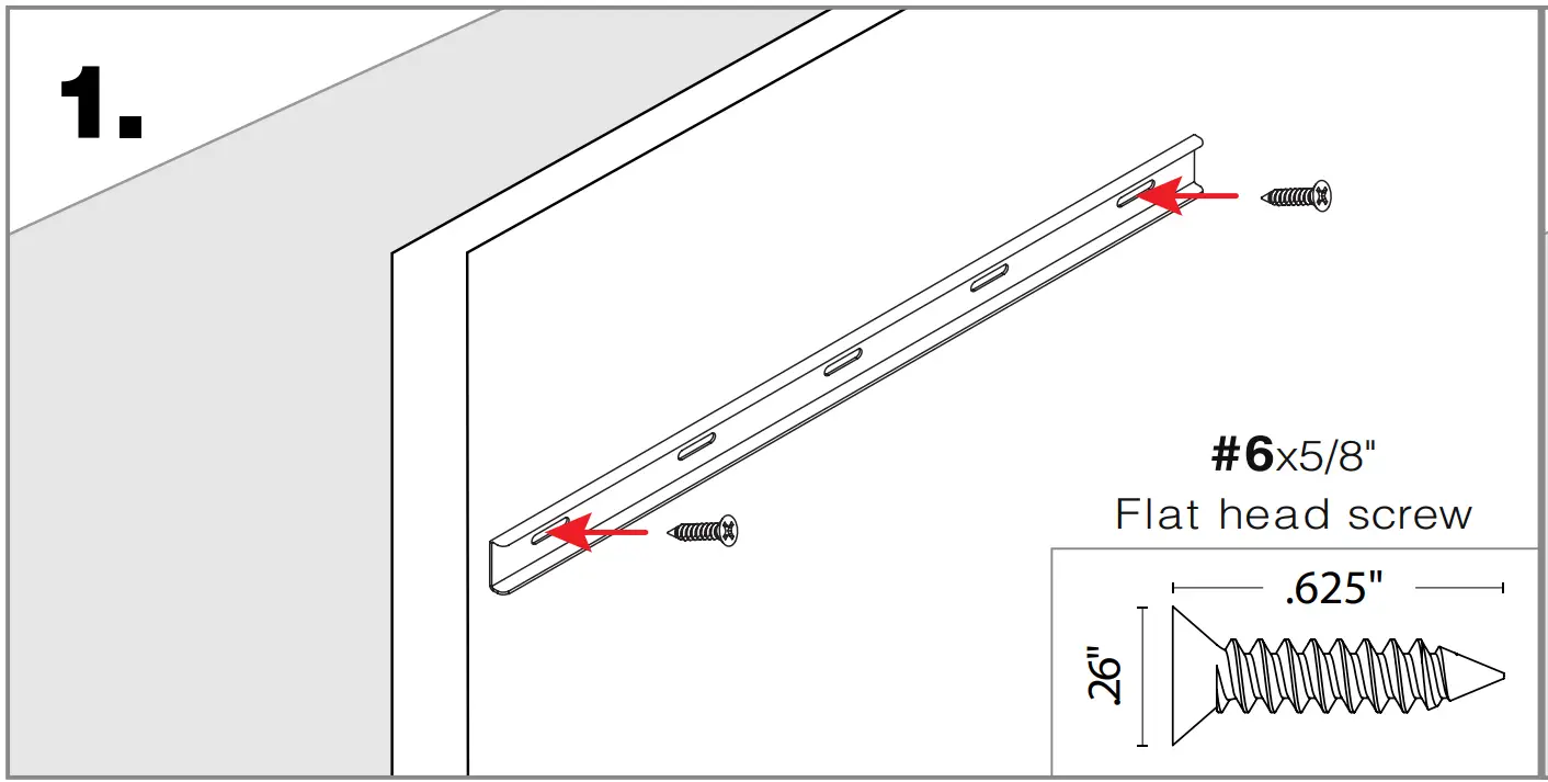 Using the #6 Flat head screws, mount two screws into the 12” magnet bracket through the slotted holes at each end