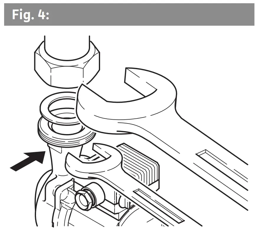 - Use an open-end wrench to secure the pump against twisting (fig. 4).