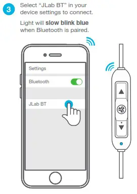 Once JLab BT has initially paired to your device, the earbuds will auto-connect to your Bluetooth device when powered back ON.
