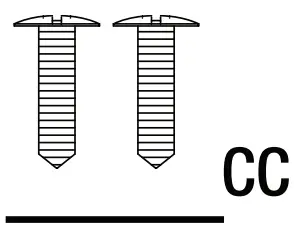 Screw in the Mounting Screws (CC) on the marked locations, leaving a gap of 0.08-0.1 0 inches between the screw head and the installation surface.