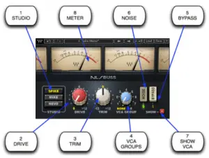Default: Not Bypassed - NOISE activates modeled analog noise modeling. Please note: The noise setting of the VCA Group Console overrides the Noise settings of specific NLS instances.