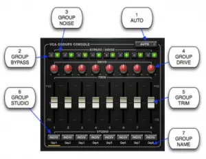 Default: Not Bypassed - GROUP NOISE controls the noise for all the NLS instances assigned to that VCA Group. Please note: The Noise setting of the VCA Group Console overrides the Noise settings of specific NLS instances.