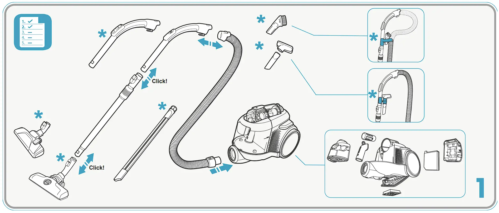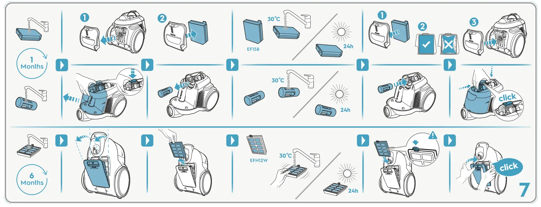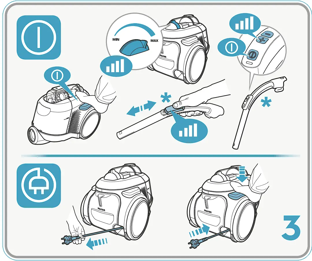 - Never use the vacuum cleaner without its filters.