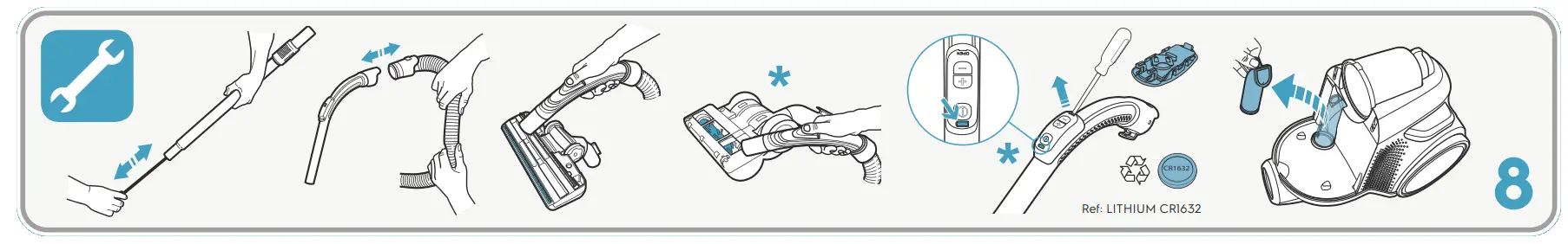 - Batteries must be removed from the remote control in the handle / LED lighted nozzle before scraping the product. The battery is to be disposed off safely.