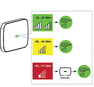 Due to Grade 2 requirement RF link works with reduction of power in 8 dB