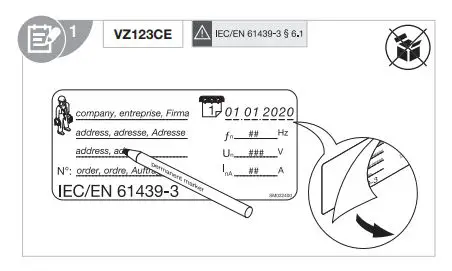 The Assembly (DBO) designated markings must be completed as specified in IEC/EN 61439 – 3 clause 6.1.