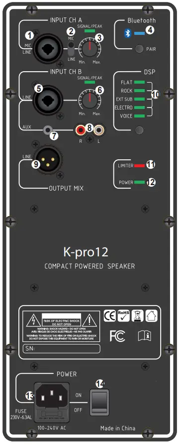 - Line input for CH B: Use combination XLR and 1/4” jack connector input balanced or unbalanced.