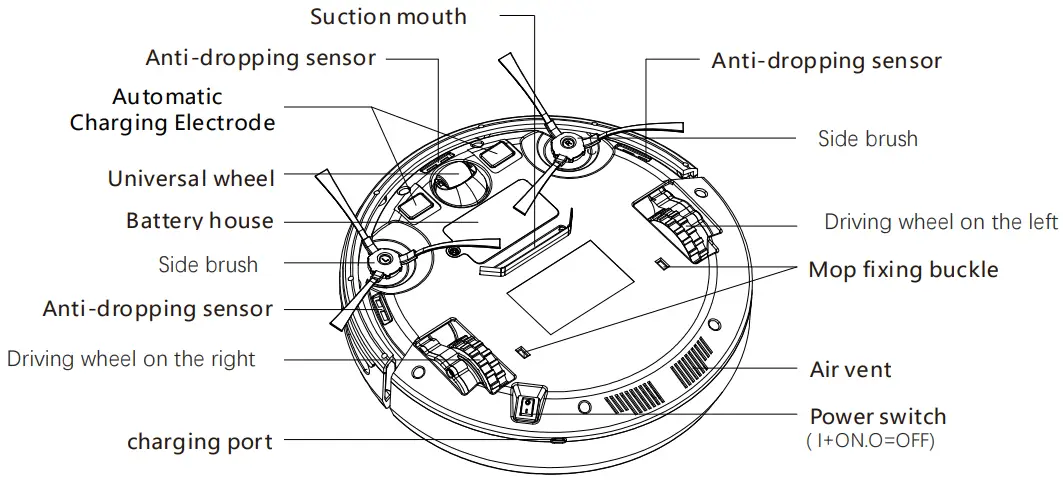 The power key is at the bottom of this robot,“ l ” Power on key,“ o ” Power off key。Beforeusing this product, make sure that the power switch is on.