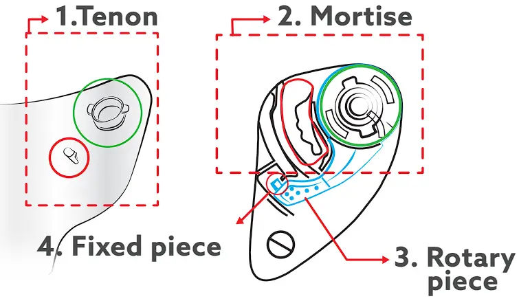 Double D buckle: The long belt goes through both D rings (A and B) at the same time, back through between A and B, and then fasten the belt in a suitable position.Pull the long belt out between A and B, then the belt is released easily.