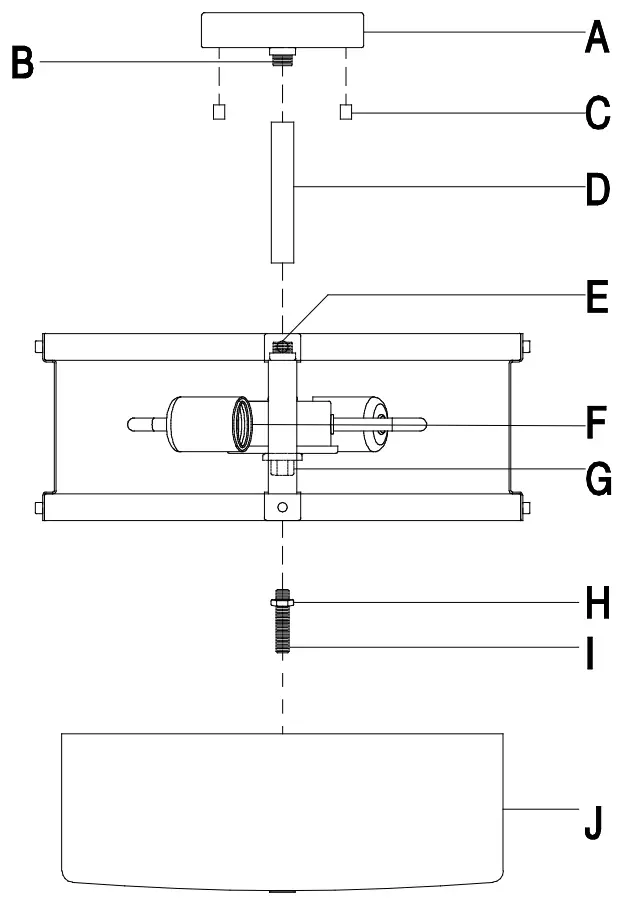 - Screw the gasket (II) onto the nipple (I) to secure the globe (J).