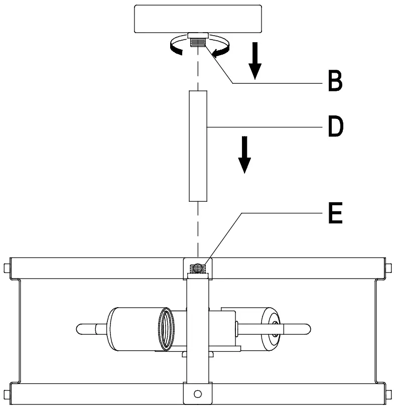 - Screw the rod (D) onto the upper bushing (E)
