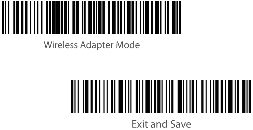 | Note: If the scanner has any trouble pairing with the adapter, please scan the command barcodes ! in sequence to reconnect the scanner to the adapter:”Enter Setup”-“Wireless Adapter i — Mode”-“Save and Exit” – |