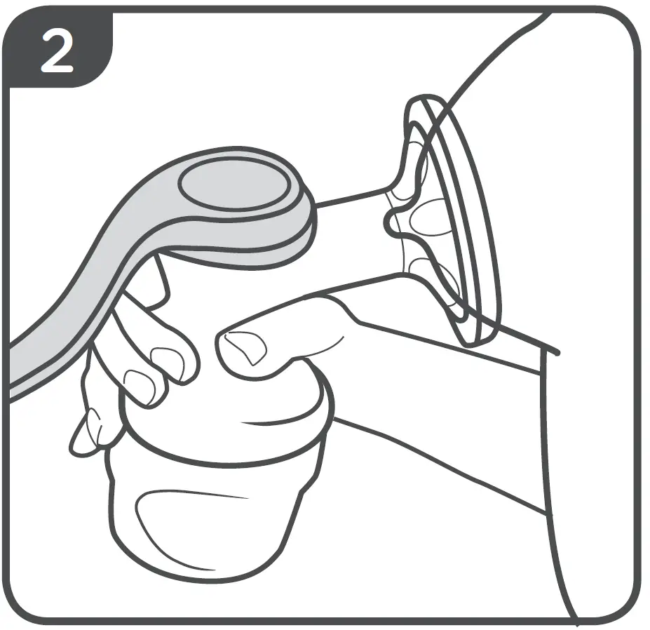 - Place the horn over your breast so that it creates a seal all the way around with your nipple at the centre of the hole. You don’t need to cover the whole of your areola or breast with the horn, so don’t force it. It should sit comfortably. If it doesn’t feel right, relax and reposition.
