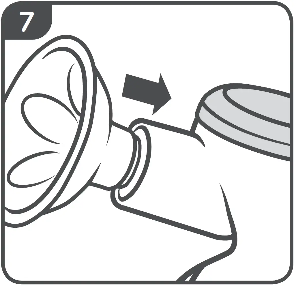 | If using this breast pump is more painful than when you breast feed, stop using it immediately. The horn should feel comfortable against your breast. If it doesn’t, you may need a different size. Contact us at www.tommeetippee.com When pumping your nipple should sit comfortably in the centre of the horn and will be extended down the tube by gentle suction. The pump creates a seal around your areola and nipple. You do not need to cover the whole of your areola or breast with the horn. Do not force your breast or nipple into the horn. Don’t tilt the bottle while expressing. Keep it upright to keep your milk flowing into the bottle. You don’t need strong suction to express milk from just behind your nipple. |
