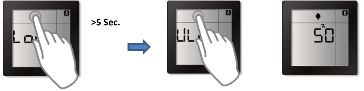To unlock the display, again press the top area for approximately 5 seconds until `ULoc’ (flashing) appears on the display.