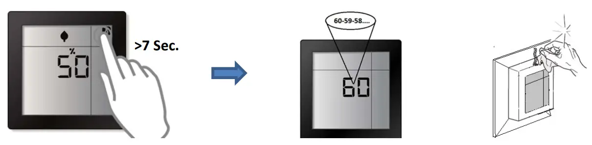 The two touch buttons will function as one 2-pole pushbutton. The touch button on the left controls the ON/UP (short/long press) function while the one on the right handles the OFF/DOWN function.