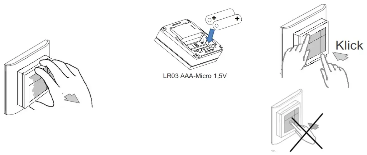 The Room Controller Touch operates with 2x LR03 (AAA) batteries, which are located in the rear section of the device.