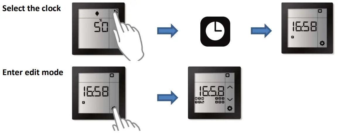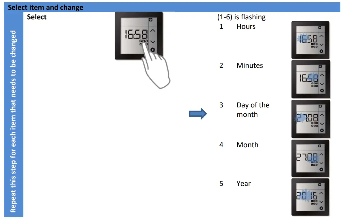 ![]() | Attention: The time and date are used for the execution of the week program. The time and date need to be set correctly in order for the week program to function properly. |