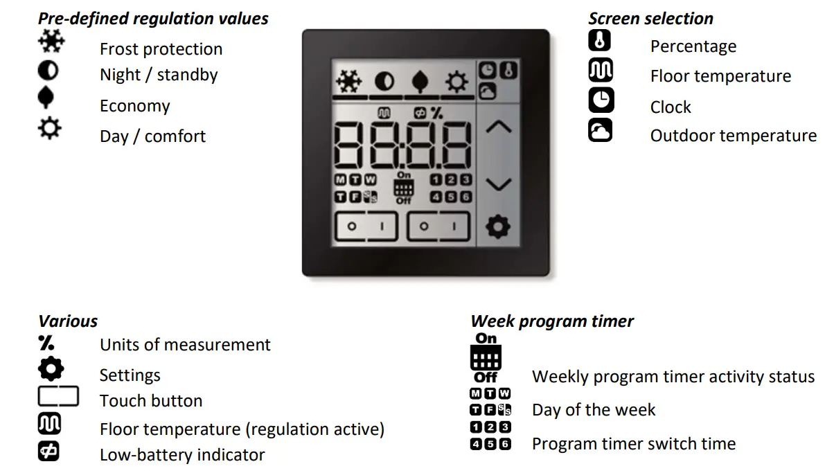 The Room Controller Touch is designed to facilitate room climate control via an intuitive LCD touchscreen menu.