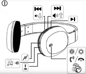 - Bluetooth stereo headphones with built-in microphone