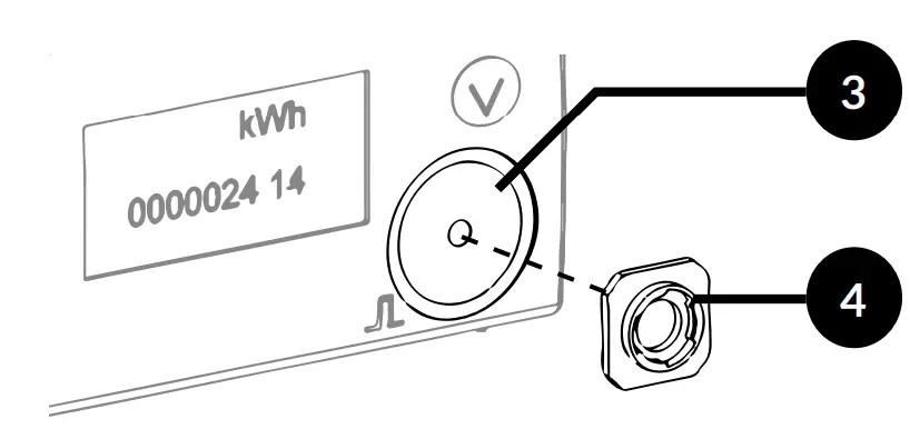 First start-up / Checking the position of the optical sensor: The sensor must be paired to the LoRaWAN network. For 60 seconds the light flashes with each light flash from the meter.