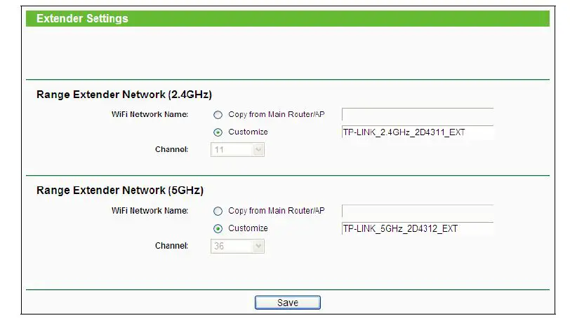| SSID | TP-LINK_Extender_2.4GHz, TP-LINK_Extender_5GHz |