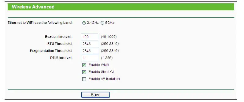 Radio Data Rate | 11ac: up to 433Mbps(Automatic) 11n:up to 300Mbps(Automatic) 11g:54/48/36/24/18/12/9/6M(Automatic)