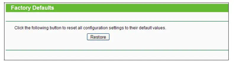 Method Two: Restore the default settings from “System Tools > Factory Defaults” of the Range Extender’s Web-based Management page. - ETHERNET: One 10/100Mbps RJ45 Ethernet port used to add wireless connectivity to an Ethernet-enabled device such as Internet TV, DVR, Gaming console and so on. Please note that this port is not allowed to be connected with router or AP.