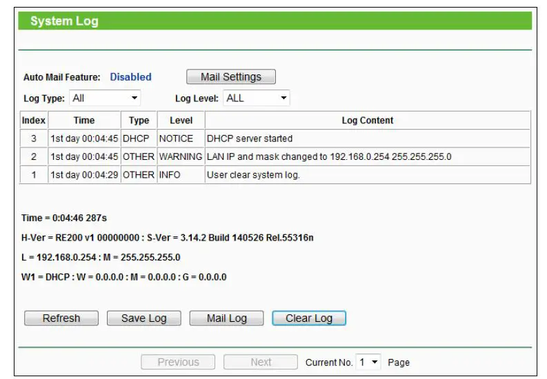 - Click the Mail Log button to send an email of current logs manually according to the address and validation information set in Mail Settings. The result will be shown in the later log soon.