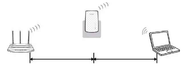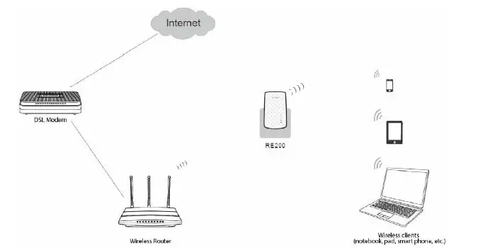 - Half-way Between – Generally, the ideal location for RE200 is half-way between the Wireless router and Wireless Client. If the wireless signal is not satisfactory, you may place RE200 somewhat nearer to the Wireless router.