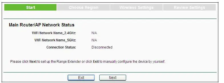 - Wireless Settings page will appear as shown in Figure 3-7. Enter the WiFi Password of your main Router/AP, name your range extender WiFi network or keep it default, and then click Next to continue.
