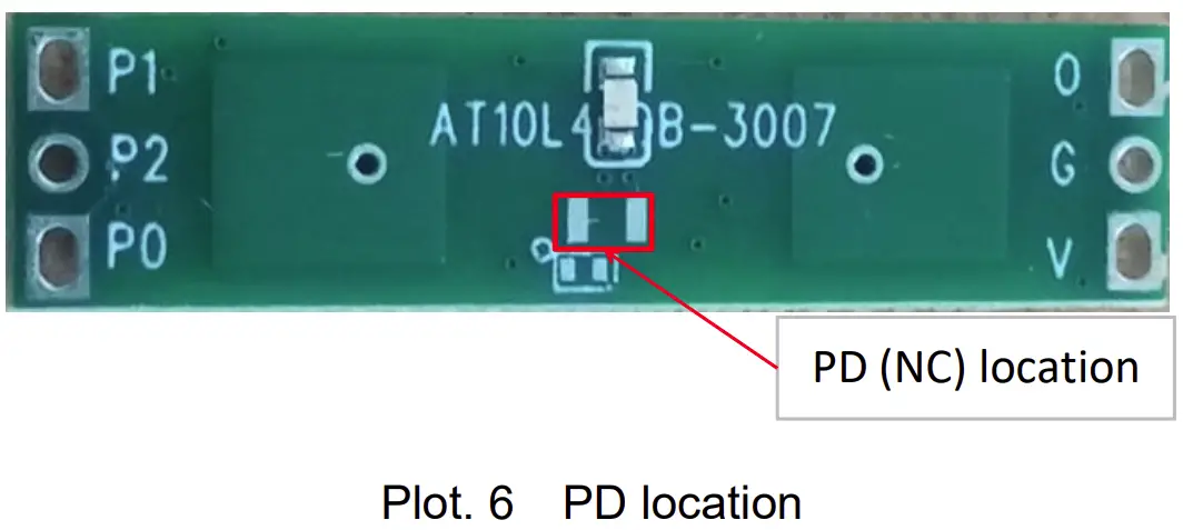 The PD (NC) detection is reserved In Plot. 6, the location of PD is shown. The PD threshold can be adjusted by either register configuration or resistor value adjustment in PD ckt. When the environment is bright that the sensing is above threshold, the module won’t sense anything.